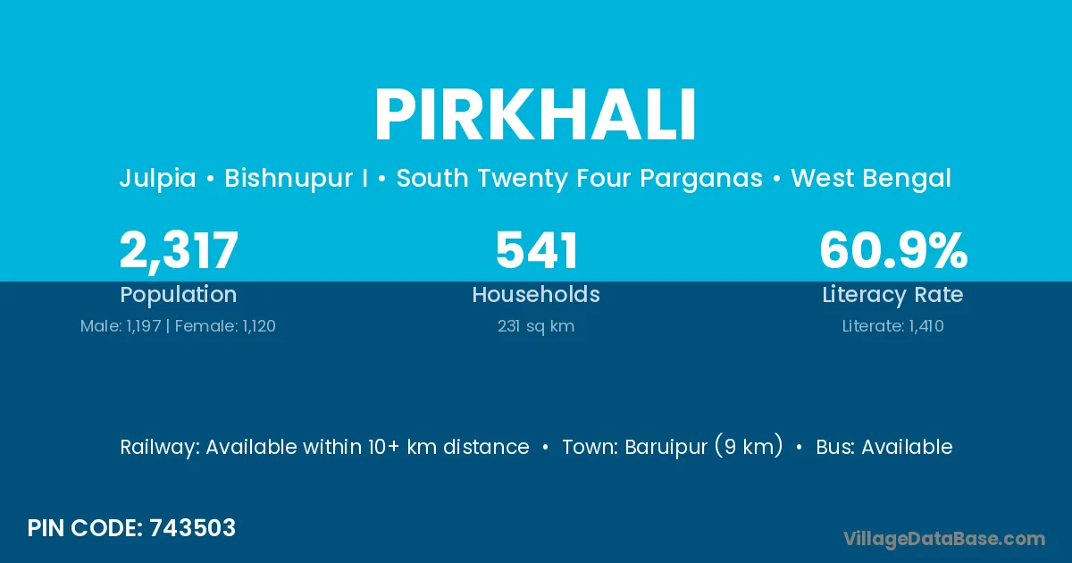 Baruipur (9 km) is the nearest town to Pirkhali village for major economic activities and is located approximately 9 km away.