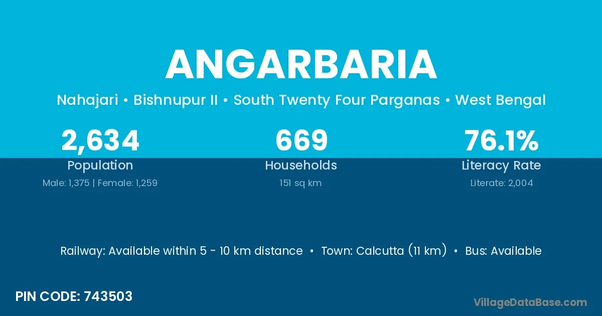 According to Census 2011 information, the village code of Angarbaria village is 743503.