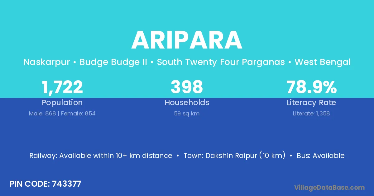 Dakshin Raipur (10 km) is the nearest town to Aripara village for major economic activities and is located approximately 10 km away.