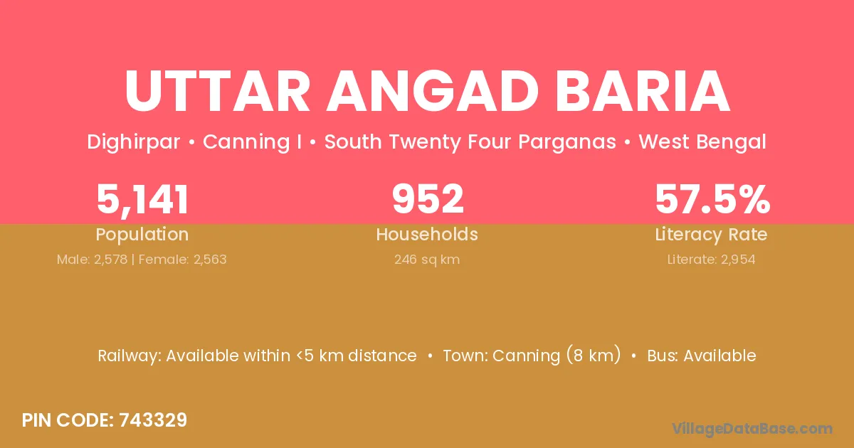 Canning (8 km) is the nearest town to Uttar Angad Baria village for major economic activities and is located approximately 8 km away.