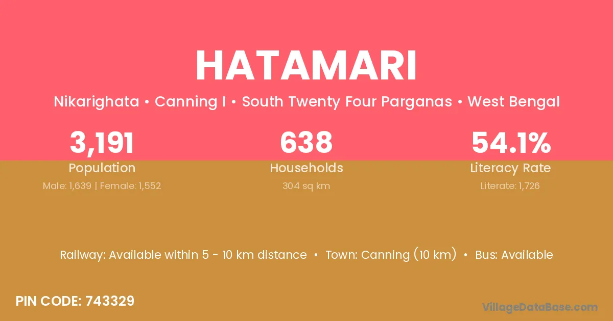 Hatamari village is located in the Canning I Subdivision of the South Twenty Four Parganas district in West Bengal.