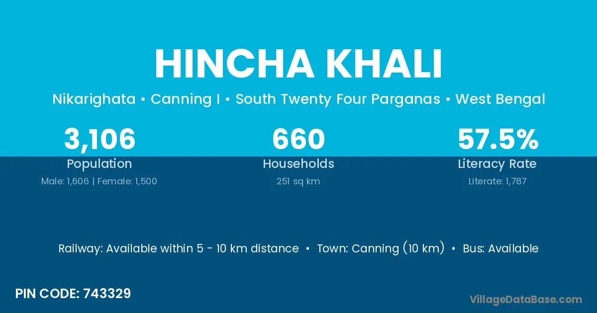 Canning (10 km) is the nearest town to Hincha Khali village for major economic activities and is located approximately 10 km away.