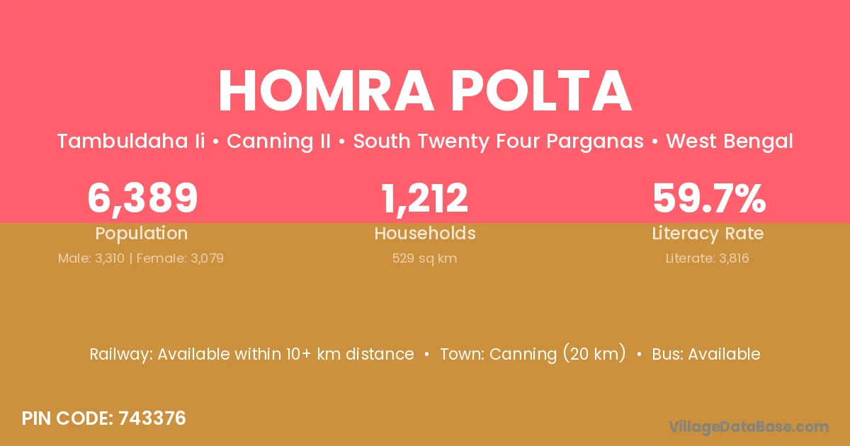 Canning (20 km) is the nearest town to Homra Polta village for major economic activities and is located approximately 20 km away.