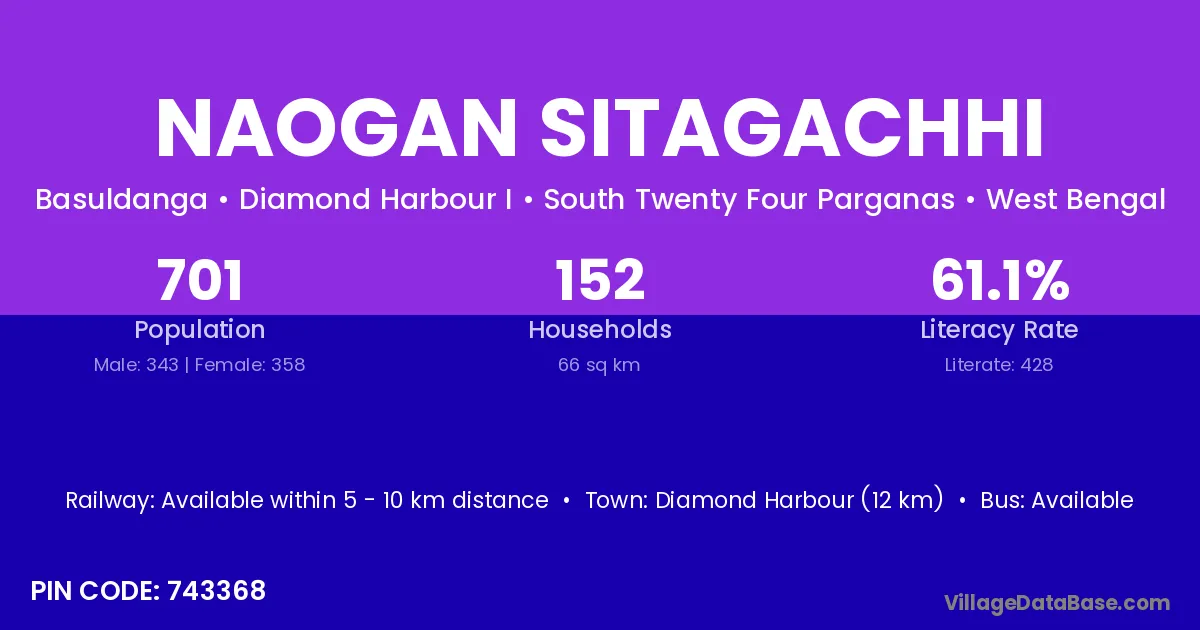 Diamond Harbour (12 km) is the nearest town to Naogan Sitagachhi village for major economic activities and is located approximately 12 km away.