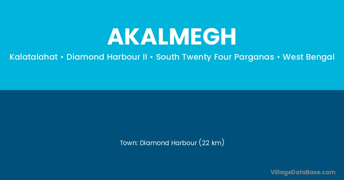 Diamond Harbour (22 km) is the nearest town to Akalmegh village for major economic activities and is located approximately 22 km away.