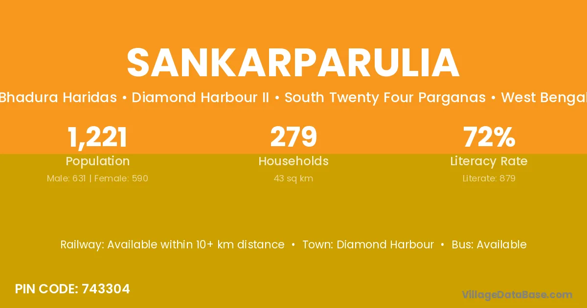 Sankarparulia village has a total population of 1,221 people, of which 631 are males and 590 are females.