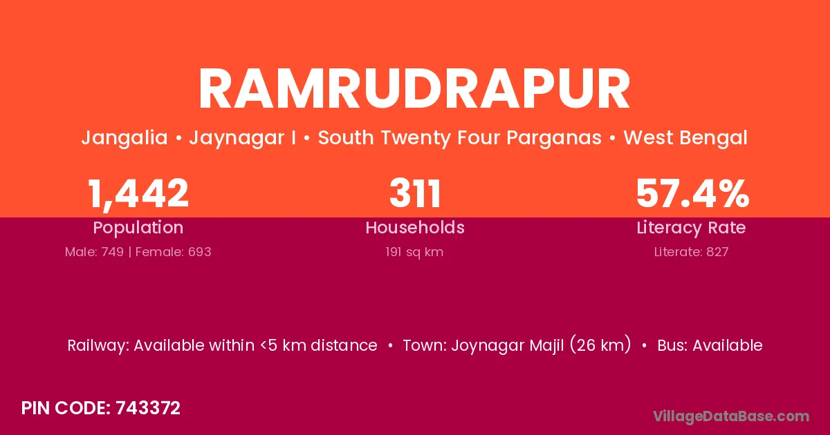 Joynagar Majil (26 km) is the nearest town to Ramrudrapur village for major economic activities and is located approximately 26 km away.