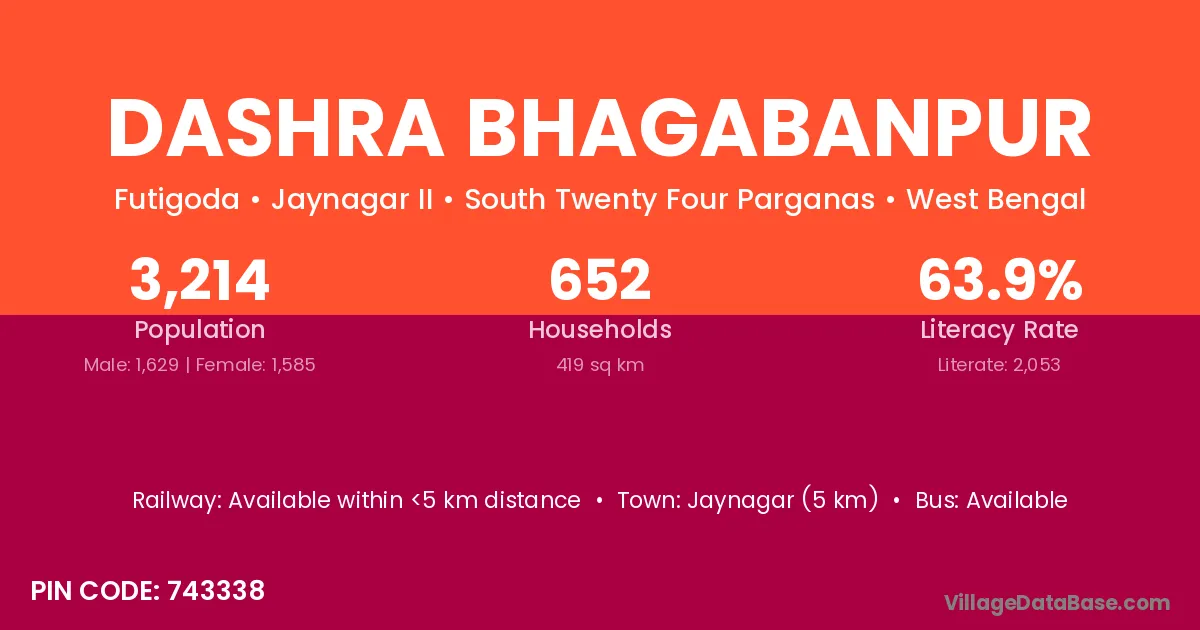 Dashra Bhagabanpur village is located in the Jaynagar II Subdivision of the South Twenty Four Parganas district in West Bengal.
