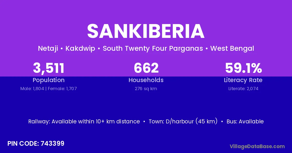 According to Census 2011 information, the village code of Sankiberia village is 743399.