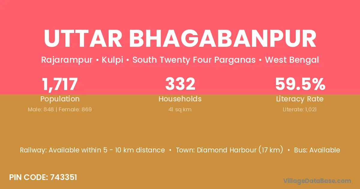 Diamond Harbour (17 km) is the nearest town to Uttar Bhagabanpur village for major economic activities and is located approximately 17 km away.