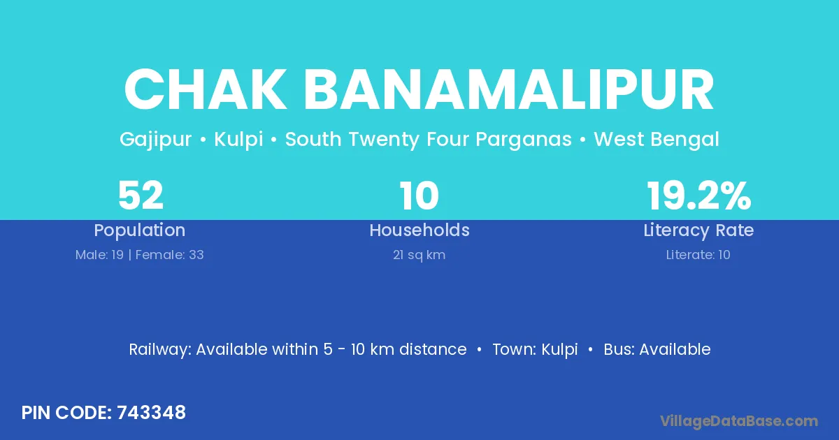 Chak Banamalipur village has a total population of 52 people, of which 19 are males and 33 are females.