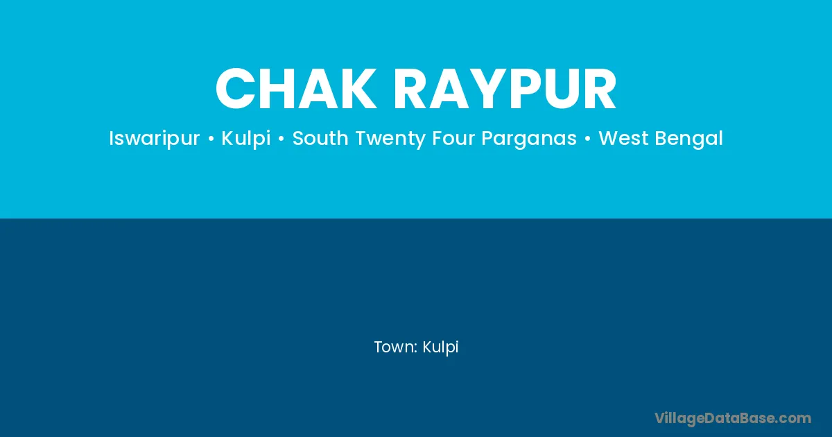 Kulpi is the nearest town to Chak Raypur village for major economic activities