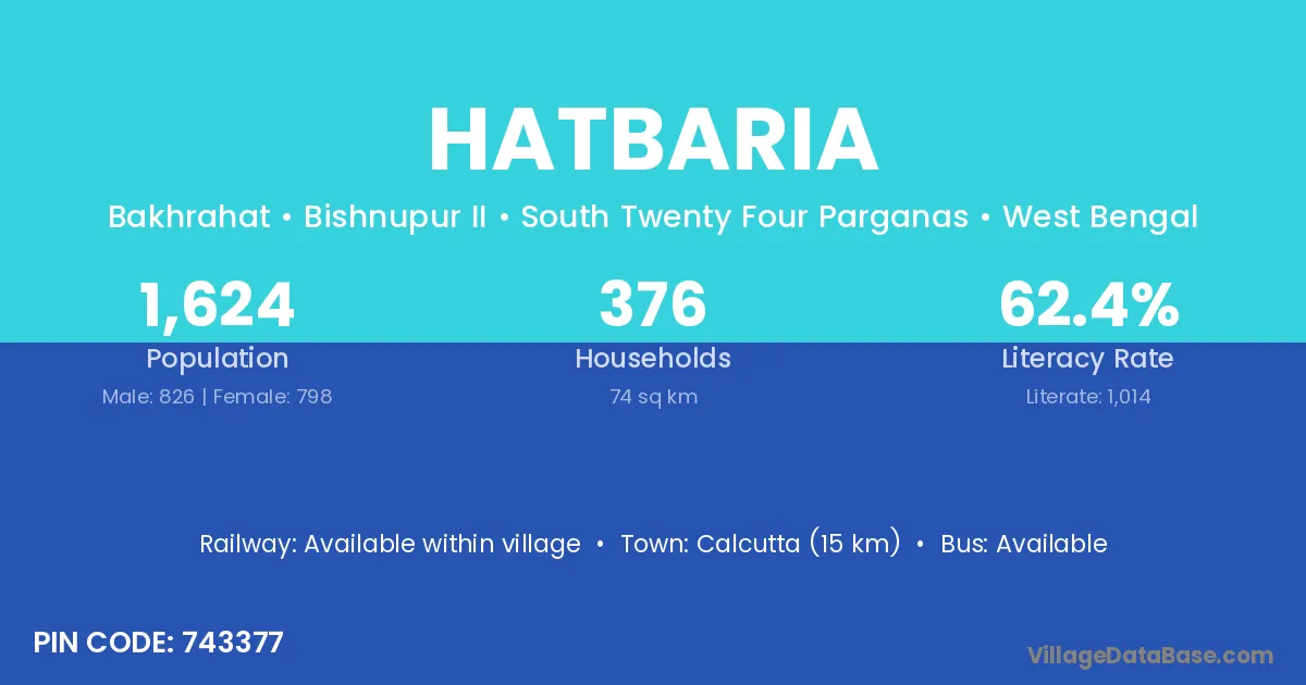 According to Census 2011 information, the village code of Hatbaria village is 743399.