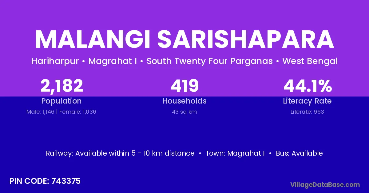 According to Census 2011 information, the village code of Malangi Sarishapara village is 743375.