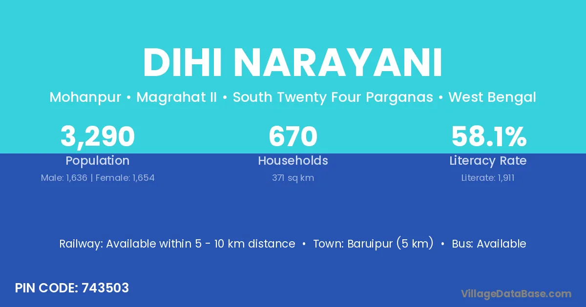 Baruipur (5 km) is the nearest town to Dihi Narayani village for major economic activities and is located approximately 5 km away.