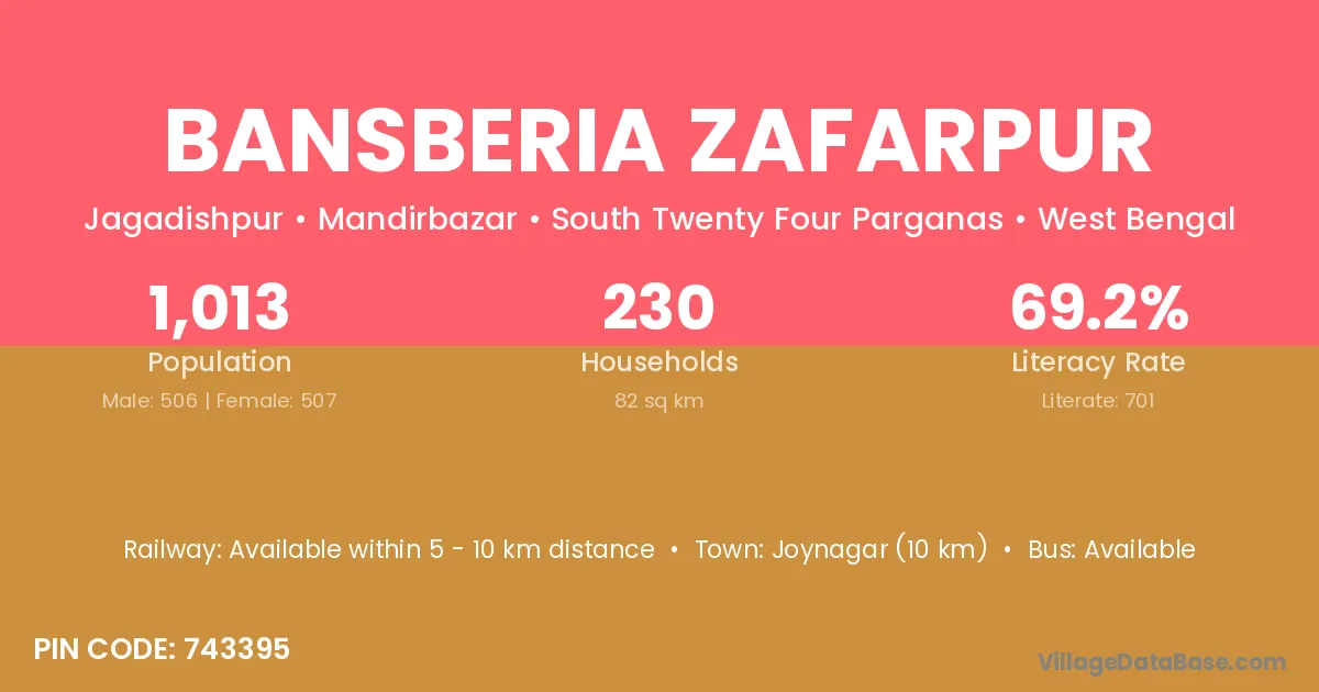 Bansberia Zafarpur village is located in the Mandirbazar Subdivision of the South Twenty Four Parganas district in West Bengal.