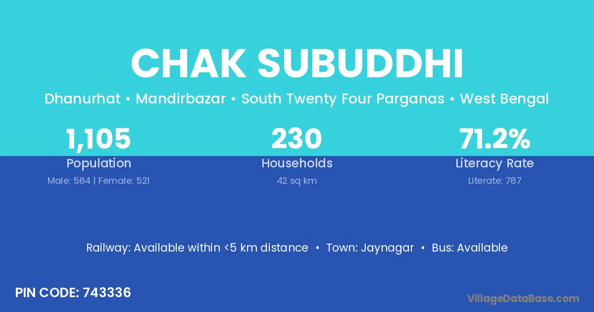 Chak Subuddhi village is located in the Mandirbazar Subdivision of the South Twenty Four Parganas district in West Bengal .
