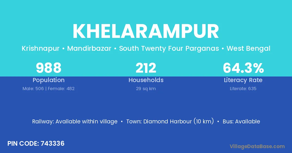 Khelarampur village is located in the Mandirbazar Subdivision of the South Twenty Four Parganas district in West Bengal.