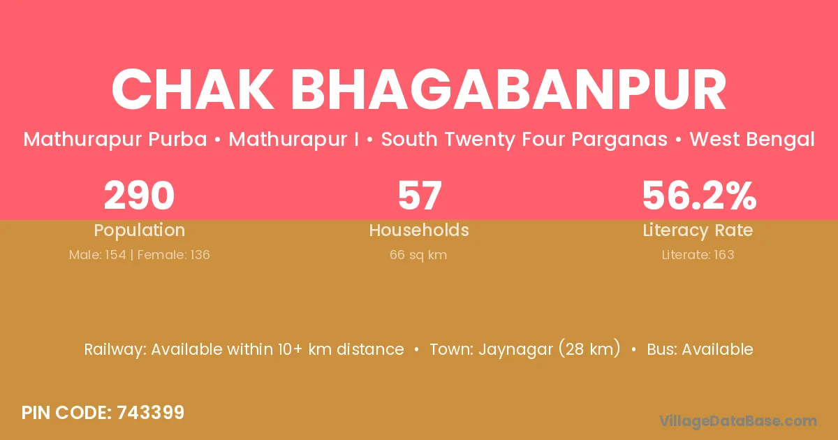Chak Bhagabanpur village has a total population of 290 people, of which 154 are males and 136 are females.