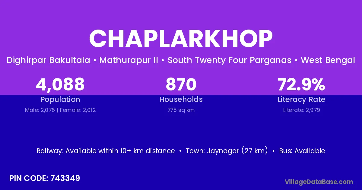 According to Census 2011 information, the village code of Chaplarkhop village is 743349.