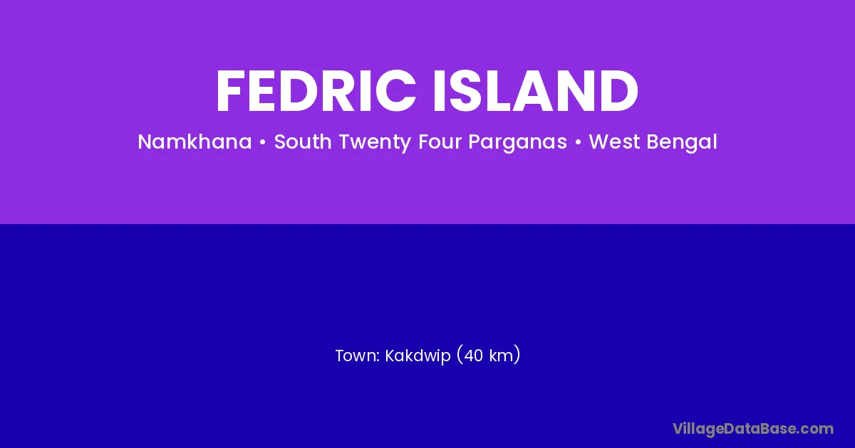 Kakdwip (40 km) is the nearest town to Fedric Island village for major economic activities and is located approximately 40 km away.