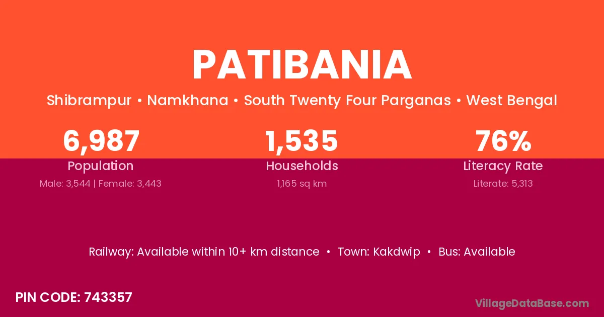 Kakdwip is the nearest town to Patibania village for major economic activities