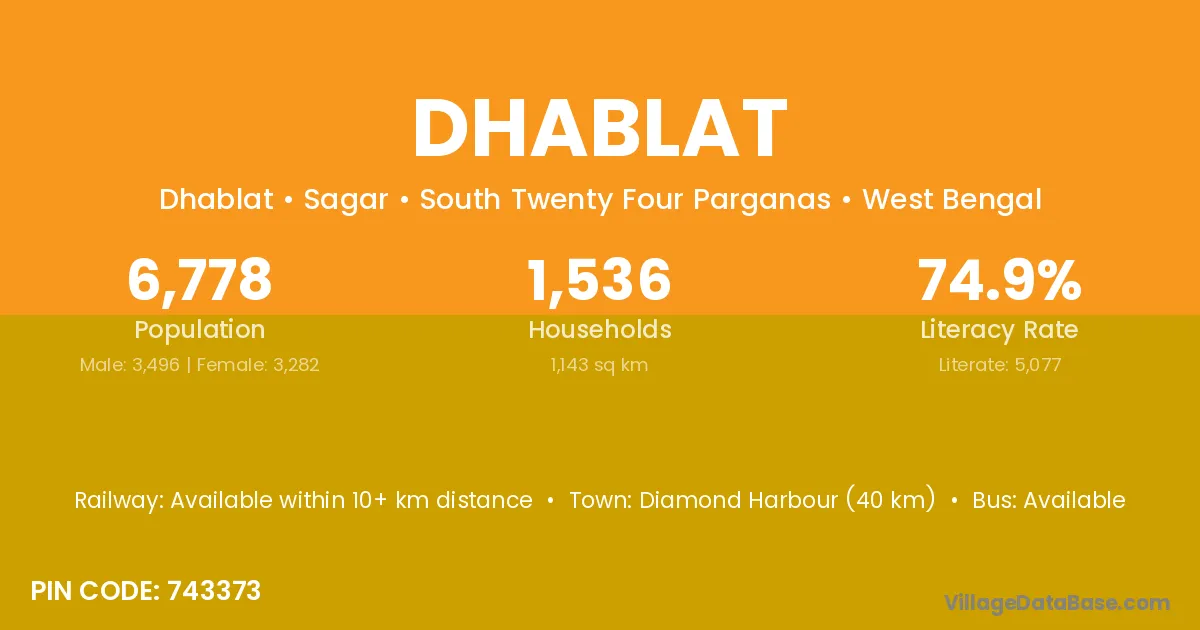 Dhablat village is located in the Sagar Subdivision of the South Twenty Four Parganas district in West Bengal.