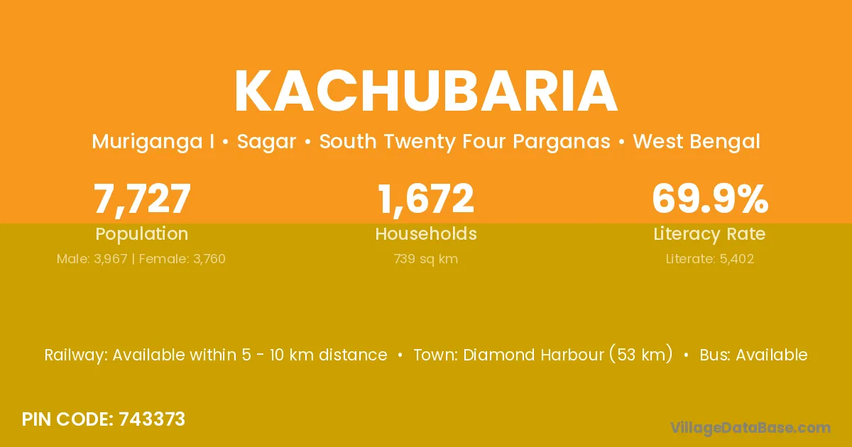 Diamond Harbour (53 km) is the nearest town to Kachubaria village for major economic activities and is located approximately 53 km away.