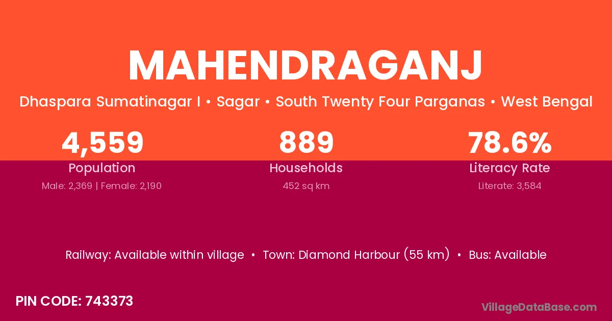 Diamond Harbour (55 km) is the nearest town to Mahendraganj village for major economic activities and is located approximately 55 km away.