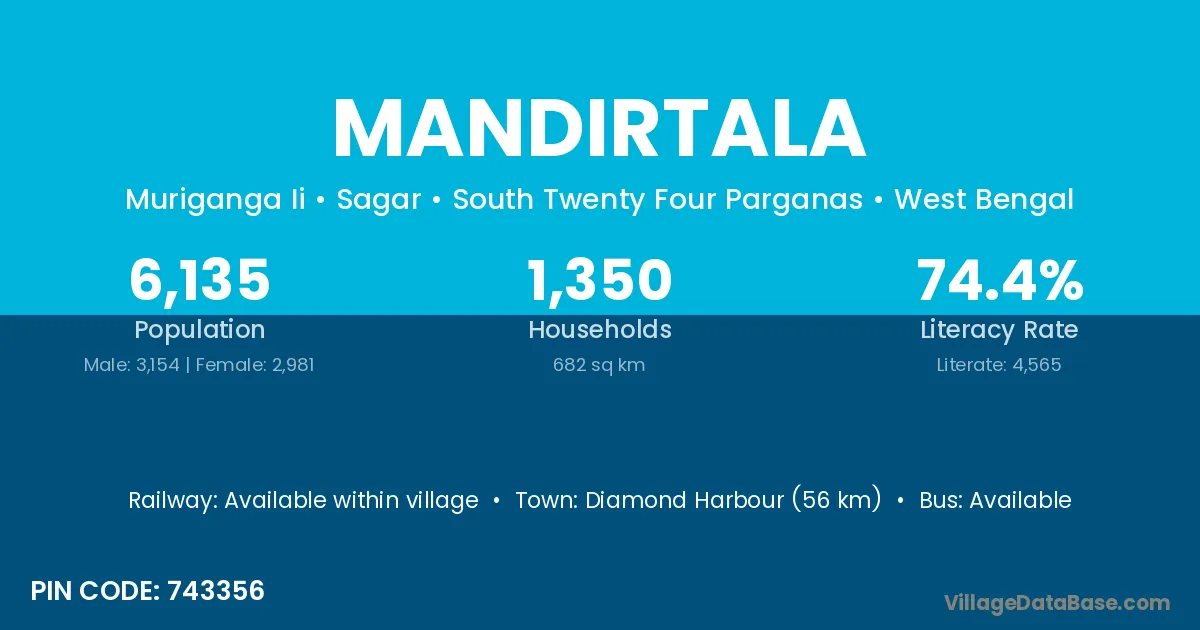 Mandirtala village is located in the Sagar Subdivision of the South Twenty Four Parganas district in West Bengal.