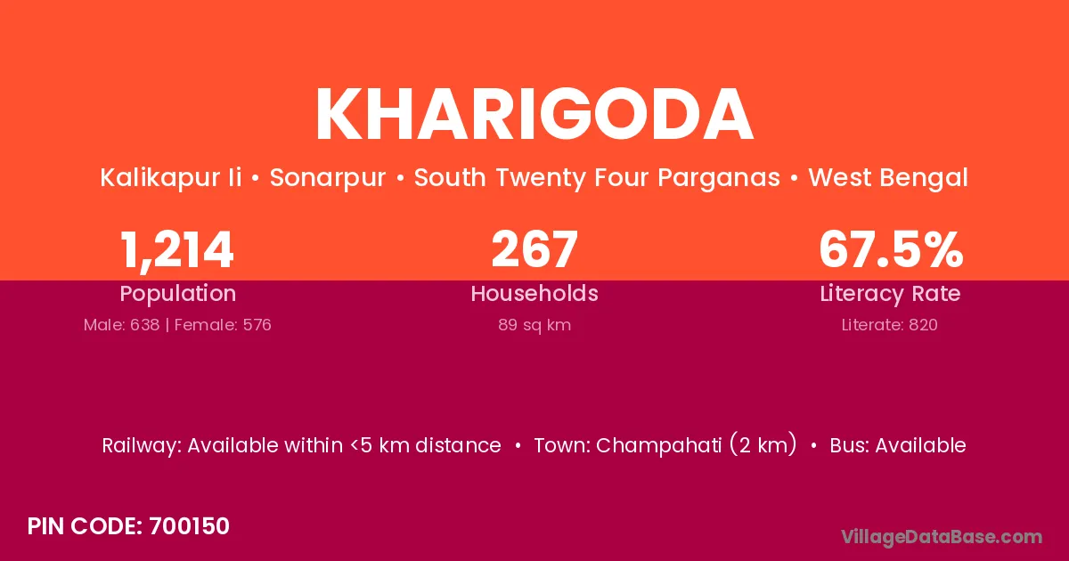 Champahati (2 km) is the nearest town to Kharigoda village for major economic activities and is located approximately 2 km away.