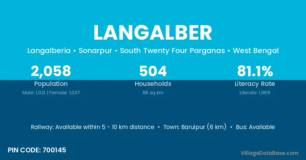 Baruipur (6 km) is the nearest town to Langalber village for major economic activities and is located approximately 6 km away.