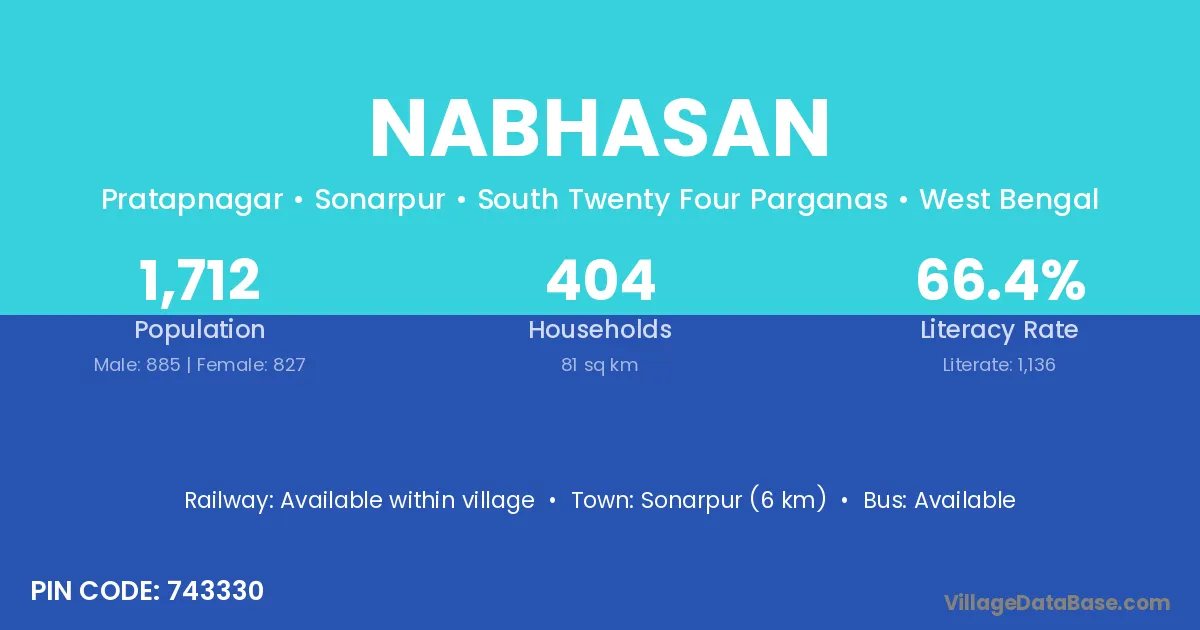 Sonarpur (6 km) is the nearest town to Nabhasan village for major economic activities and is located approximately 6 km away.