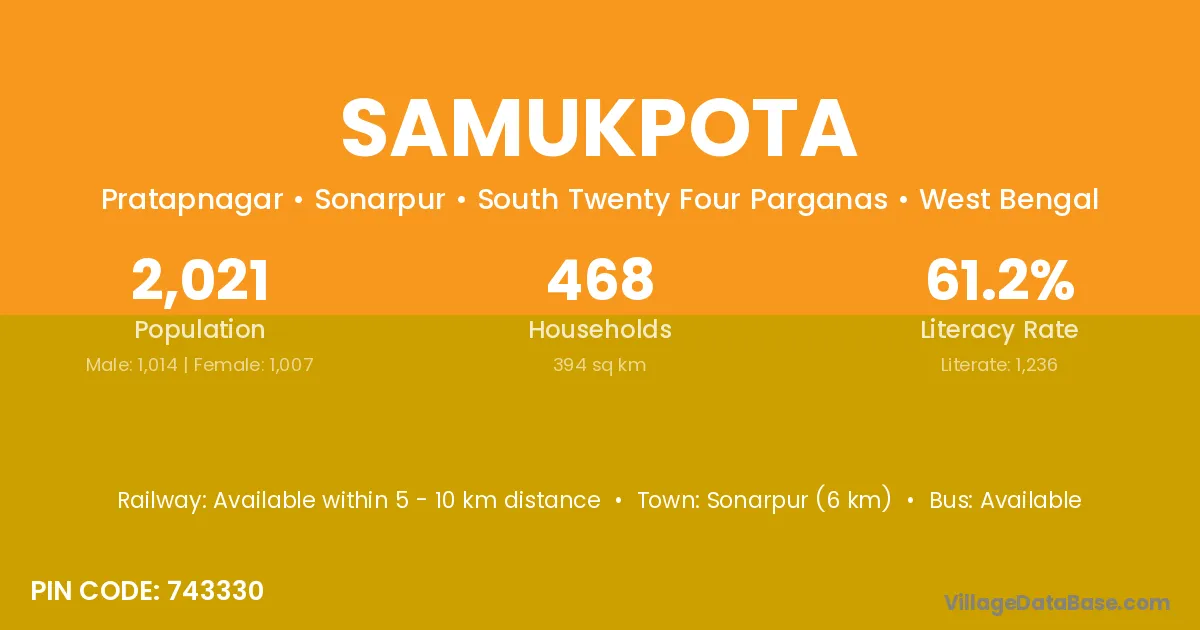 Samukpota village is located in the Sonarpur Subdivision of the South Twenty Four Parganas district in West Bengal.