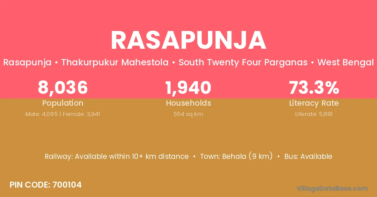 Rasapunja village is located in the Thakurpukur Mahestola Subdivision of the South Twenty Four Parganas district in West Bengal .