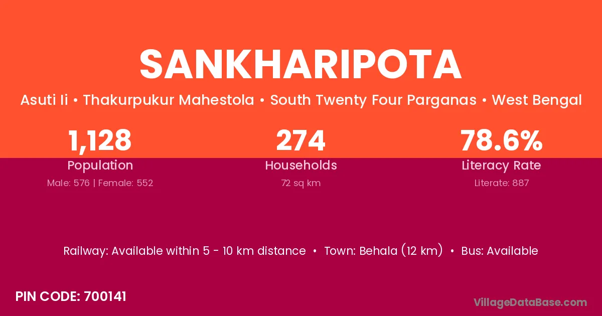 Behala (12 km) is the nearest town to Sankharipota village for major economic activities and is located approximately 12 km away.