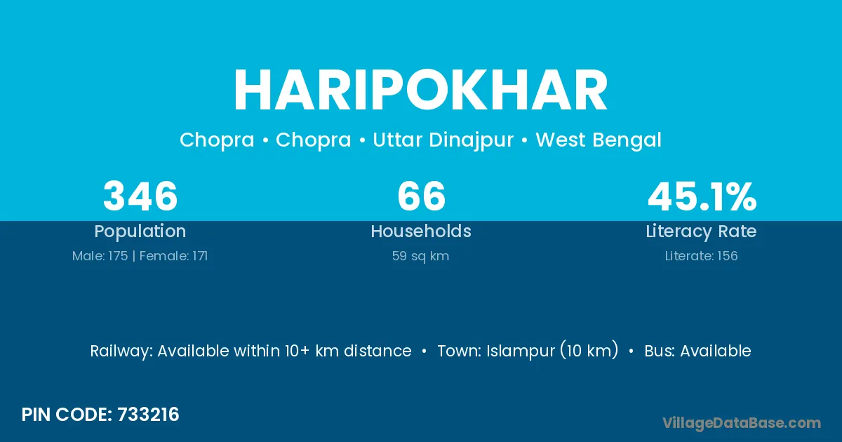 Islampur (10 km) is the nearest town to Haripokhar village for major economic activities and is located approximately 10 km away.