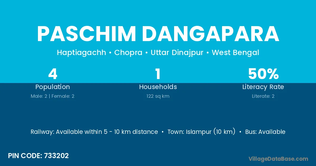 Islampur (10 km) is the nearest town to Paschim Dangapara village for major economic activities and is located approximately 10 km away.