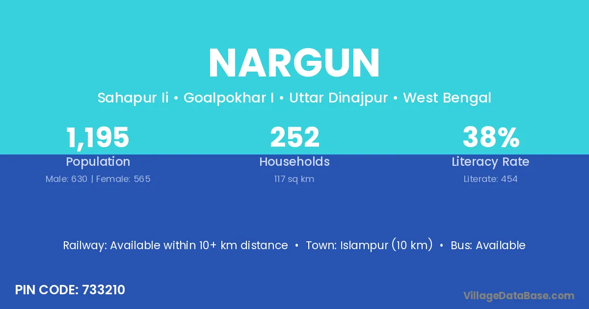 Islampur (10 km) is the nearest town to Nargun village for major economic activities and is located approximately 10 km away.