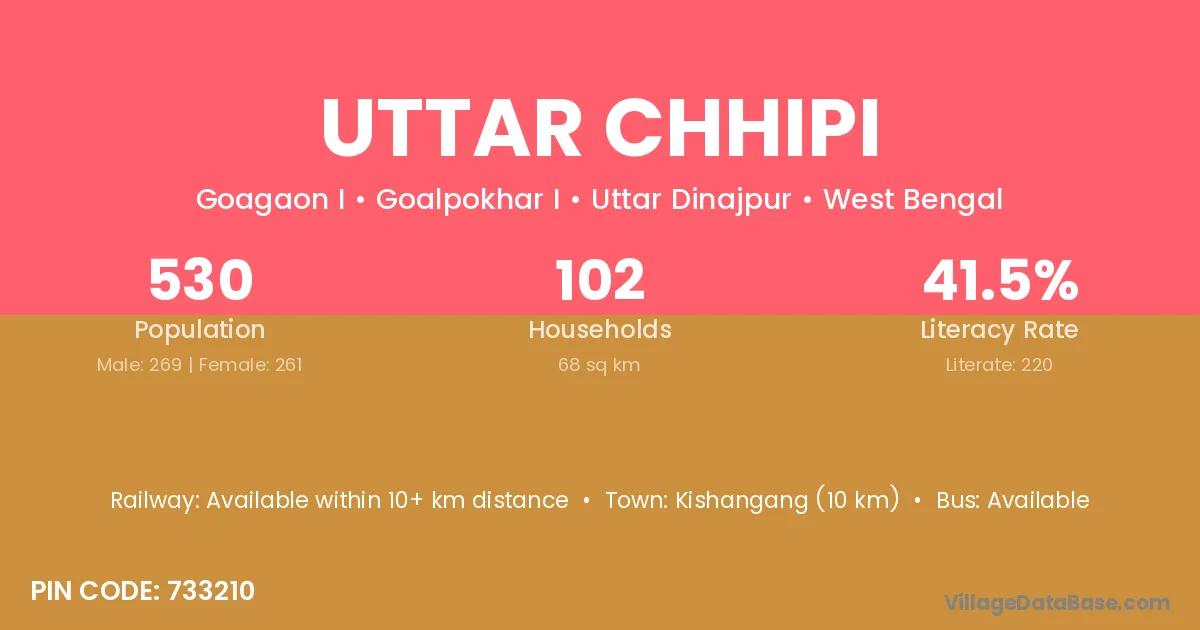 Uttar Chhipi village has a total population of 530 people, of which 269 are males and 261 are females.