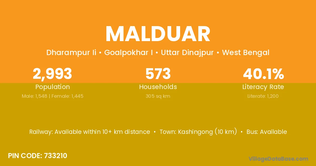 Malduar village is located in the Goalpokhar I Subdivision of the Uttar Dinajpur district in West Bengal .