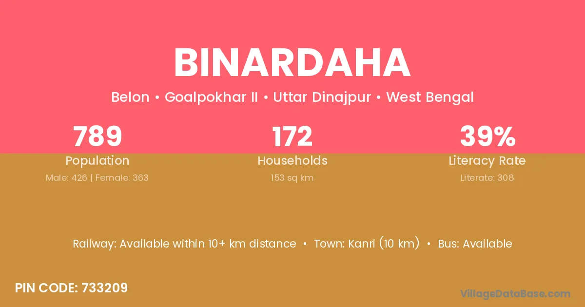 Kanri (10 km) is the nearest town to Binardaha village for major economic activities and is located approximately 10 km away.