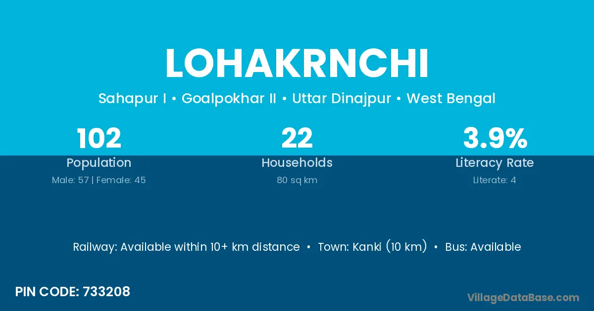 Kanki (10 km) is the nearest town to Lohakrnchi village for major economic activities and is located approximately 10 km away.