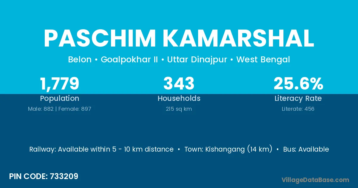 Paschim Kamarshal village is located in the Goalpokhar II Subdivision of the Uttar Dinajpur district in West Bengal.