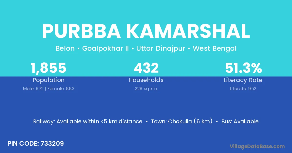 Purbba Kamarshal village is located in the Goalpokhar II Subdivision of the Uttar Dinajpur district in West Bengal.