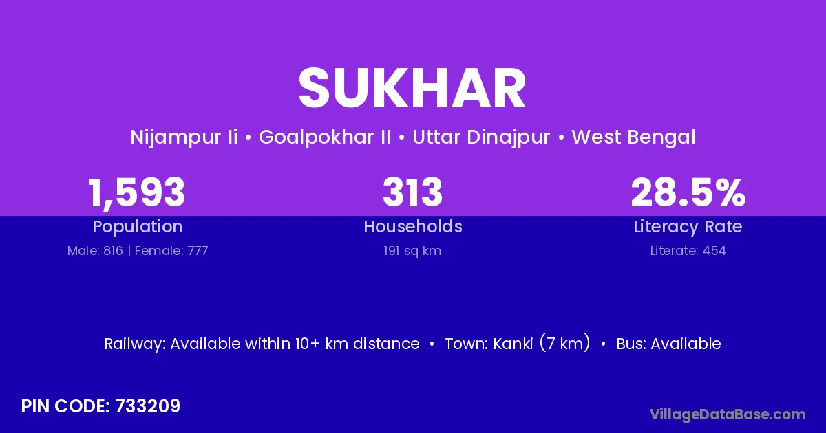 According to Census 2011 information, the village code of Sukhar village is 733209.