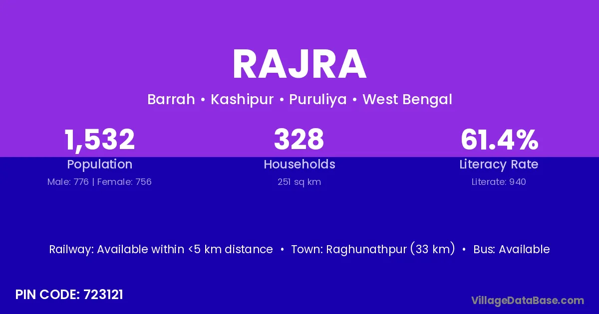 According to Census 2011 information, the village code of Rajra village is 733129.