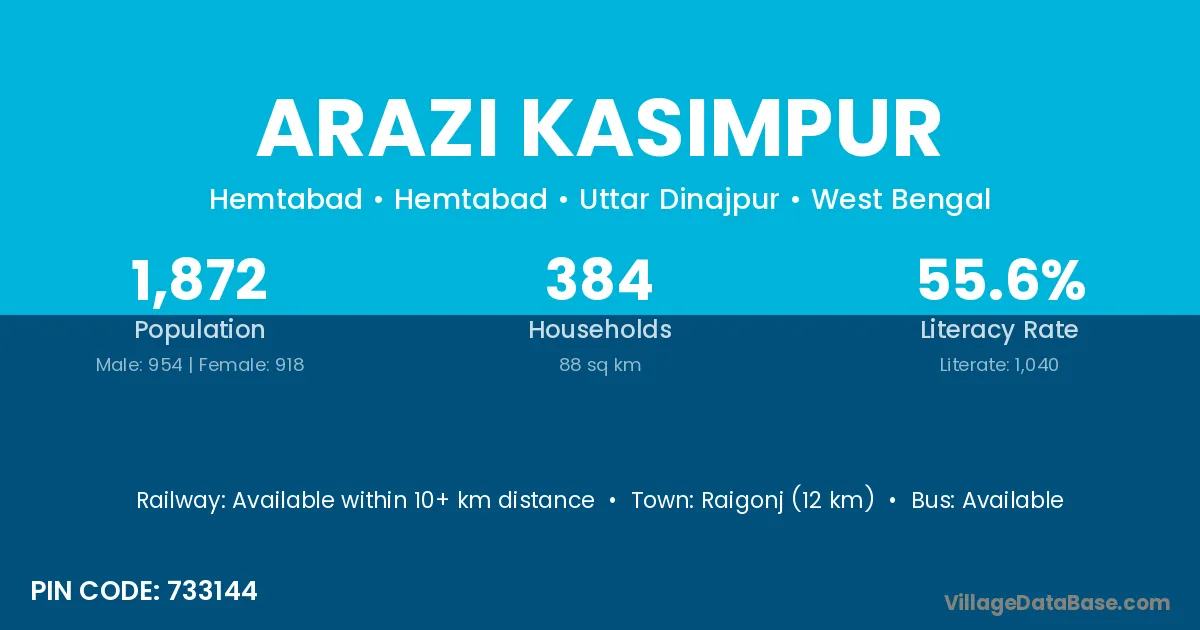 Arazi Kasimpur village is located in the Hemtabad Subdivision of the Uttar Dinajpur district in West Bengal.