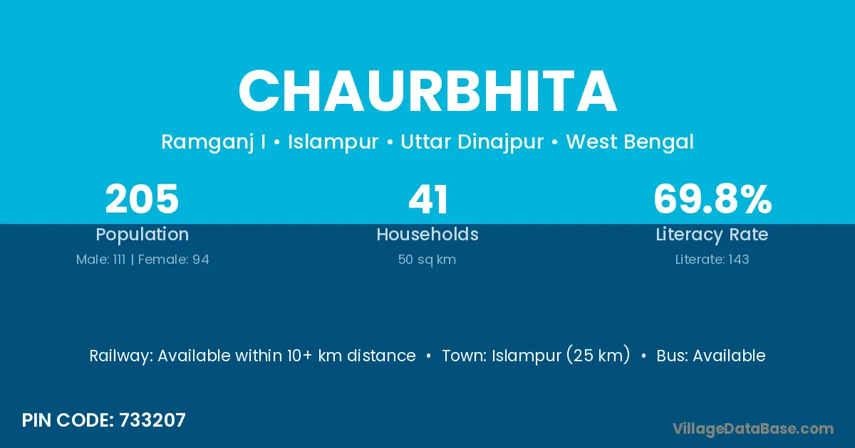 Islampur (25 km) is the nearest town to Chaurbhita village for major economic activities and is located approximately 25 km away.