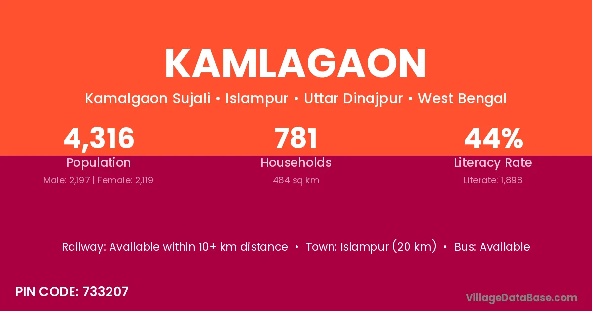 Islampur (20 km) is the nearest town to Kamlagaon village for major economic activities and is located approximately 20 km away.